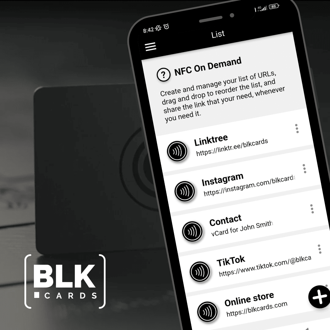 Use our simple and intuitive NFC Writer App “BLK CARDS” that we specifically designed for making digital business cards.