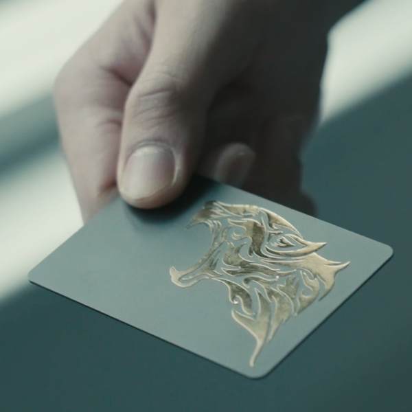 Get a customised black NFC contactless digital business card with your name OR your logo, printed in gold, black or white, on one side of the signature black matte NFC card by BLK CARDS.